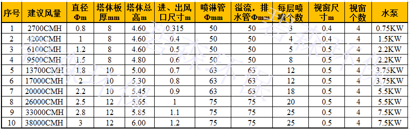 噴淋吸收塔參數(shù)表