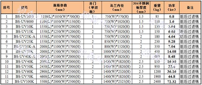 UV光解廢氣凈化設備規(guī)格參數(shù)表